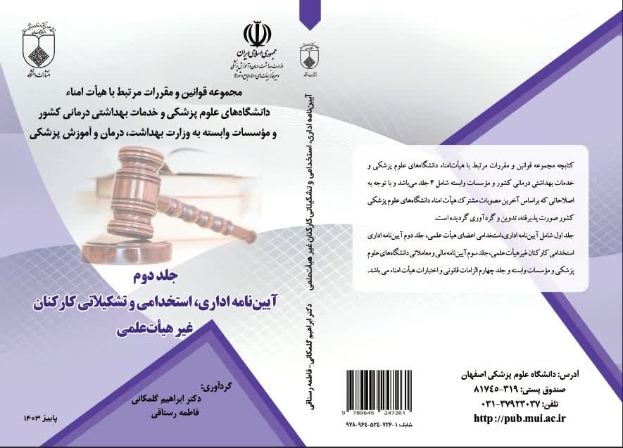 مجموعه قوانین و مقررات مرتبط با هیأت امناء دانشگاه های علوم پزشکی و خدمات بهداشتی درمانی و مؤسسات وابسته به وزارت بهداشت، درمان و آموزش پزشکی- جلد دوم: آیین نامه اداری، استخدامی و تشکیلاتی - کارکنان غیرهیأت علمی